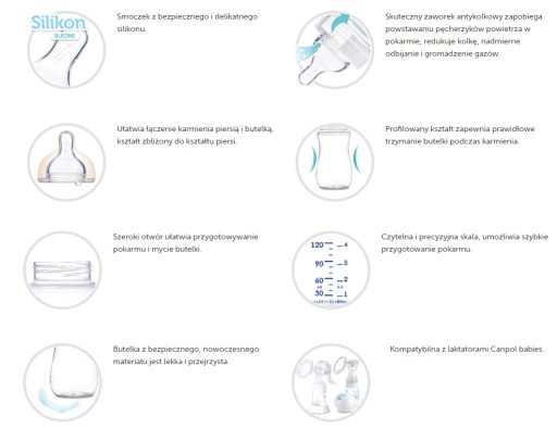 Butelka pasuje do laktatora elektrycznego Easy&Natural, laktatora elektrycznego EasyStart i laktatora ręcznego Basic. Możliwość bezpośredniego odciągania pokarmu do butelki ułatwia bezpieczne karmienie dziecka świeżo odciągniętym mlekiem mamy. Dostępna w kilku wariantach kolorystycznych.