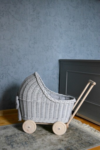 СЕРАЯ плетеная кукольная коляска + постельное белье