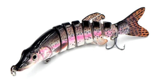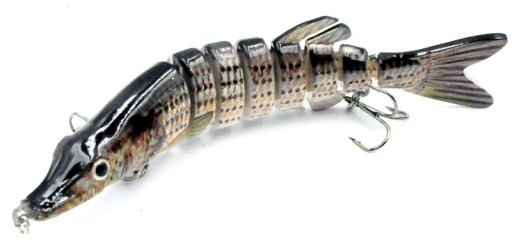 Najwyższej jakości wobler typu "swim-bait", łamany, wykonany w japońskiej technologii, rewelacyjny na szczupaki i inne drapieżniki. Przynęta tego typu jest wykonana z bardzo odpornego tworzywa pokrytego wieloma warstwami utwardzanego lakieru, uzbrojone w bardzo ostre kotwice. Przynęty tego typu są niebywale popularne na zachodzie Europy, w Stanach Zjednoczonych oraz Japonii. Na naszych rodzimych łowiskach mogą okazać się prawdziwym killerem, w miejscach o nie dużej głębokości oraz z bujną roślinnością podwodną, nie jeden szczupak przyczajony w "podwodnej dżungli" powinien zaatakować bez wahania. Do zestawu wybieramy najłowniejsze modele, kolorystyka poglądowa.