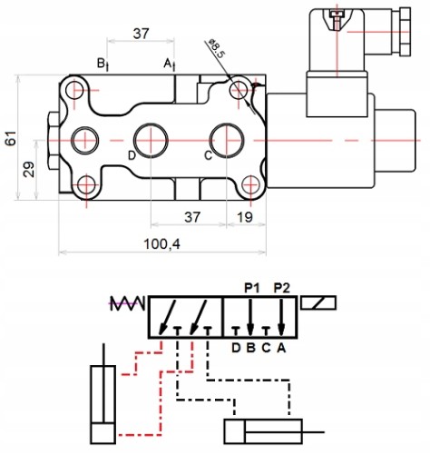 Z lewej strony schemat hydrauliczny oferowanego rozdzielacza: