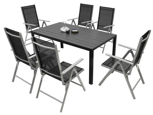 Konstrukcję stołu oraz krzeseł stanowi wysokiej jakości aluminium, malowane metodą proszkową. W oferowanym zestawie blat stołu wykonany jest z nieabsorbujących wody desek kompozytowych WPC, używanych między innymi do produkcji nowoczesnych systemów tarasowych i elewacji. Najważniejszym elementem konstrukcyjnym stołu są 4 profile aluminiowe w kształcie litery „U”. Ich zastosowanie sprawia, że po zmontowaniu całości stół jest wyjątkowo stabilny! Takie rozwiązanie pozwoliło na uzyskanie wolnej przestrzeni pod stołem i uniknąć niepotrzebnych dodatkowych konstrukcji przeszkadzających w wygodnym korzystaniu z mebli.