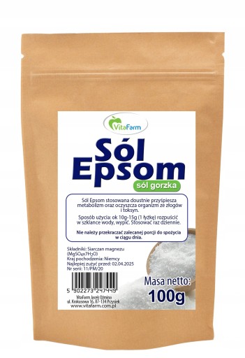 Nasza Sól Epsom pozyskiwana jest z naturalnych źródeł. Sól Epsom, zwana inaczej solą gorzką lub angielską, to naturalnie czysty związek mineralny - siarczan magnezu (MgSO4). Nazwa soli wzięła się od miasta Epsom pod Londynem w Anglii, gdzie związek ten był początkowo odparowywany ze źródeł wody mineralnej. Wydobycie naszej soli audytowane jest przez instytucje państwowe i międzynarodowe zgodnie ze standardami GMP (Good Manufacturing Practice). W ten sposób gwarantujemy produkt najwyższej jakości