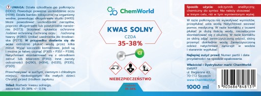 Kwas Solny 35-38% CZDA - Techniczny - 1000 ml - ChemWorld