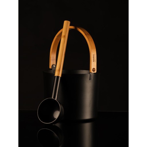 Ведро металлическое NARVI черное бамбуковое 5л для сауны