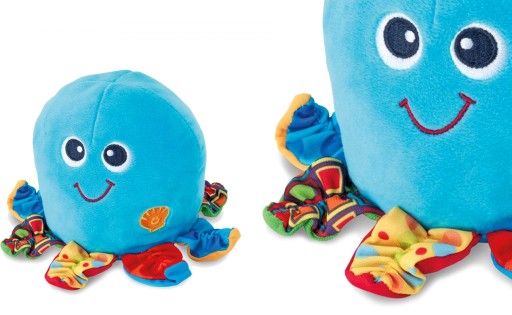 Została wykonana z bezpiecznych dla maluchów materiałów. Jest mięciutka i miła w dotyku, a jej kolory i kształt sprawiają, że dziecko z jeszcze większą radością podąża za zabawką. Ośmiornica ma także brata Kraba; wspólnie gwarantują maluchowi mnóstwo frajdy podczas zabawy!
