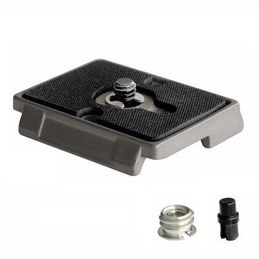 Płytka ma prostokątny kształt, gwint 1/4" oraz adapter 3/8".