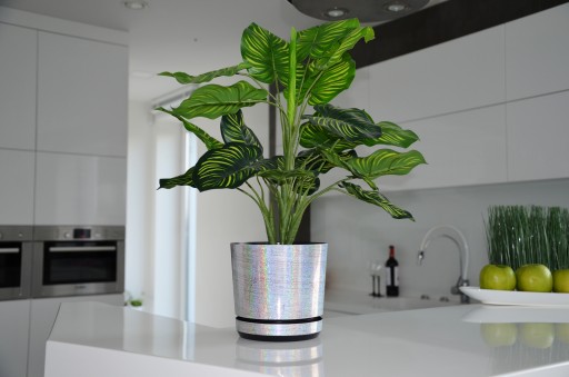 Gładka, iskrzącą milionami drobinek doniczka wprowadzi do pomieszczeń nutę ekstrawagancji. Połyskujące drobinki tworzą obłędną taflę, od której nie można oderwać wzorku.