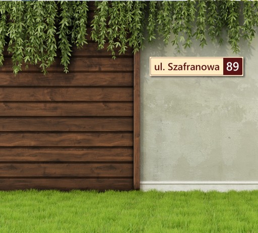 Tabliczkę mocujemy do elewacji za pomocą kleju montażowego ( MAMUT czy TYTAN ). Można również przykręcić za pomocą wkrętów oczywiście po uprzednim wywierceniu otworów w narożnikach.