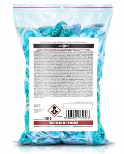 STRONG TRUCIZNA NA DUŻE GRYZONIE to silny preparat gryzoniobójczy skuteczny przeciw trudnym do zwalczania gryzoniom. Preparat dzięki smakowitym składnikom mieszkanki jest wykrywany przez szkodniki nawet ze znacznej odległości, a dzięki zawartości sprawdzonej substancji czynnej - BRODIFACOUM - jest w 100% śmiertelny już po jednorazowym spożyciu.