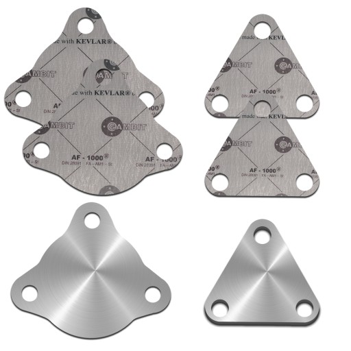 Zaślepki wykonane z wysokiej jakości stali kwasoodpornej 0H18N9, natomiast uszczelki z płyty GAMBIT AF-100 materiał o szczególnie wysokich parametrach wytrzymałościowych, odpornej na wszystkie warunki panujące w układzie wydechowym.