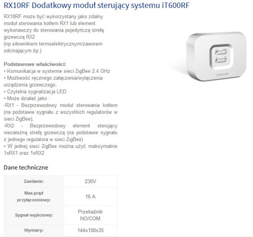 Dodatkowy moduł sterujący do systemu bezprzewodowego iT600RF