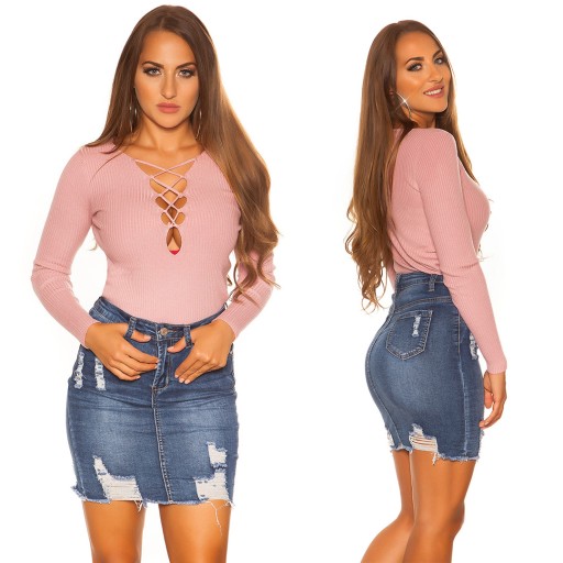 SW211 ПУДРОВО-РОЗОВЫЙ ДЖЕМПЕР С ЗАВЯЗКОЙ НА ВЫРЕЗЕ