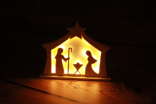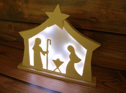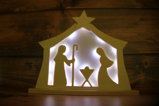 Szopka betlejemska podświetlana (światło ledowe ciepłe lub zimne, zasilana baterią), doskonały prezent pod choinkę lub jako dekoracja świąteczna.