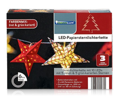 ŁAŃCUCH 10 GWIAZD Z PODŚWIETLENIEM LED