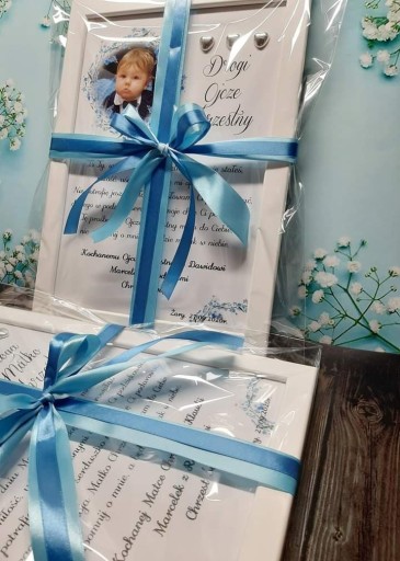 Ramki są z pełną personalizacją wraz z fotografią dziecka chrzczonego.