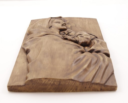 Płaskorzeźba przedstawiająca Matkę Boską z dzieciątkiem .