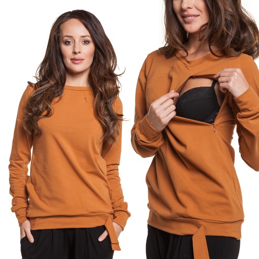Model bluzy z wyjątkowej dzianiny fitness, który zaprojektowaliśmy z myślą o kobietach w ciąży oraz dla karmiących mam.