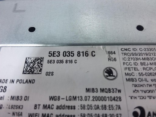 Opis: jednostka radia 5E3035816C, wyświetlacz 5E3919605 -jakość A && OCTAVIA IV RADIO NAWIGACJA COLUMBUS MIB 3 KOMPLET