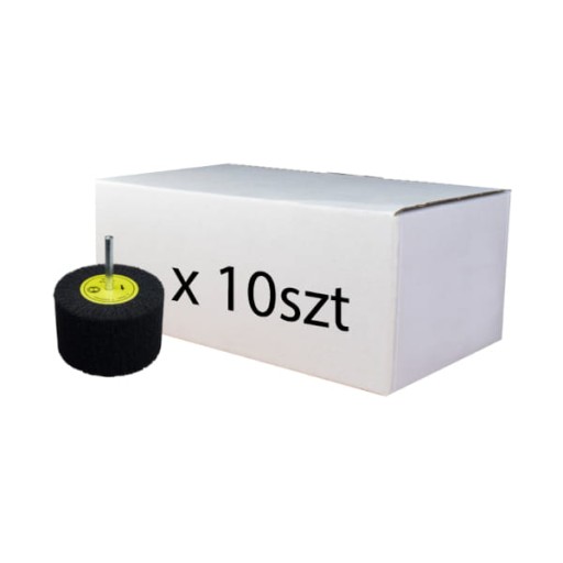 Ściernica trzpieniowa listkowa z włókniny. Zastosowanie: do szlifowania metalu, drewna, tworzyw sztucznych i innych materiałów. Rozmiar: śr./wys. 80/50 mm, materiał: włóknina, śr. trzpienia: 6 mm, obr. max. 7500/min