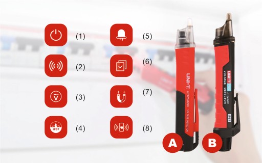 Prosty w użyciu, bezdotykowy tester napięcia przemiennego, sygnalizujący występowanie napięcia poprzez świecenie końcówki oraz emisję sygnału dźwiękowego. Dedykowany dla elektryków, pracowników serwisu, konserwatorów i właścicieli budynków do szybkiego testowania obwodów zasilających.