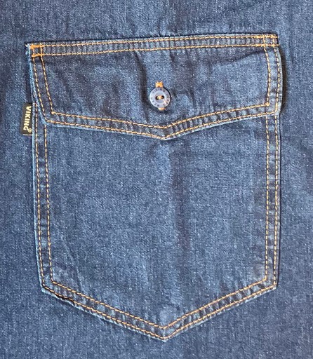 Koszula denimowa w klasycznym odcieniu z usztywnianym kołnierzem i mankietami zapinanymi na guzik. Wykonana wyłącznie z wysokogatunkowej bawełny. Tkanina jest oddychająca, miła w dotyku i nie doświadcza efektu rozciągania bądź kurczenia się, co umożliwia długotrwałe użytkowanie. Wyposażona w dwie ozdobne kieszenie zapinane na guziki.