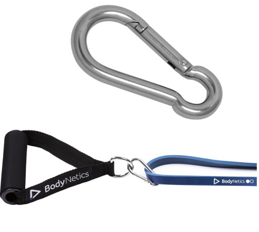 Karabińczyk stalowy, wykorzystywany w zestawie ekspanderów BodyNetics.