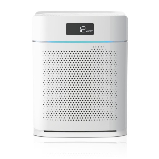 - Oczyszczacz stale monitoruje i wyświetla jakość powietrza. Dodatkowo na wyświetlaczu pokazany jest aktualny poziom cząstek PM 2,5.