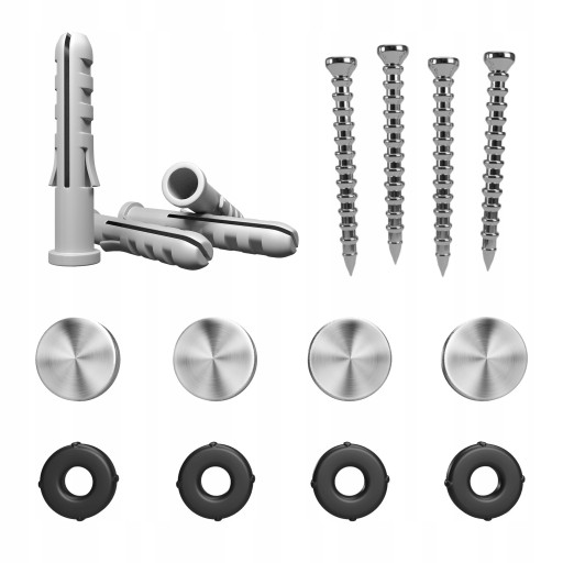 - W skład zestawu wchodzą – Dystanse i kołki montażowe umożliwiające montaż tabliczki.