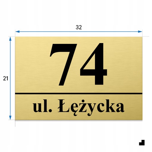 АДРЕСНАЯ ТАБЛИЧКА С НОМЕРОМ ДОМА С НОМЕРОМ ДОМА 32x21 см ЗОЛОТО + ШПИЛЬКИ
