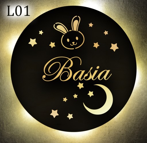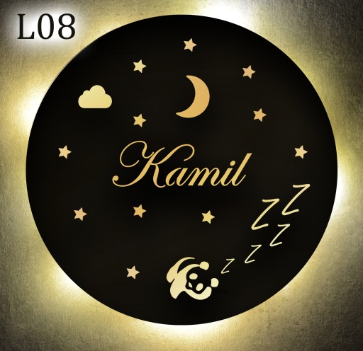 Lampka z imieniem dziecka LED nocna drewno 30 cm