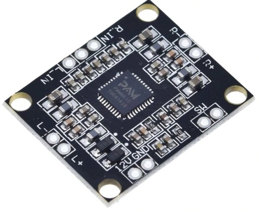 Moduł wzmacniacz audio zbudowany został w oparciu o układ PAM8610. Wzmacniacz pracujący w klasie D charakteryzuje się bardzo dużą sprawnością - czyli małymi stratami. Przekłada się to także na małe straty cieplne i dzięki temu wymiary wzmacniacza są zminiaturyzowane (w stosunku do podobnych konstrukcji o takiej samej mocy pracujących w klasie AB).
