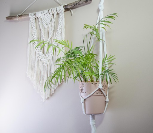 Kolejną zaletą jest sposób mocowania. Można zawiesić bezpośrednio na haczyku lub też przewiesić przez kijek tworząc kompozycję, składającą się z większej ilości kwietników oraz innych ozdób.