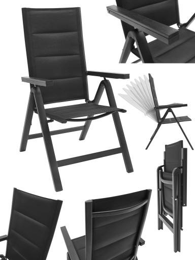 ZESTAW MEBLI OGRODOWYCH idealny do Twojego ogrodu. Stelaż został podwójnie lakierowany proszkowo, co idealnie przystosowuje ten produkt do zastosowania wewnątrz jak i na zewnątrz. Siedzisko krzesła oraz oparcie zostało zrobione z czarnego, elastycznego obicia tekstylnego wypełnionego miękką pianką tak, aby maksymalnie zwiększyć wygodę. Posiada ono dwa oparcia boczne wykonane z deski kompozytowej wpc. Użyte materiały nie wymagają częstej konserwacji, są odporne na warunki pogodowe i nie wymagają specjalnych środków do pielęgnacji. Nóżki są dodatkowo zaopatrzone w nakładki z tworzywa sztucznego. Stół posiada blat z czarnej hartowanej szyby o gr. 5 mm.