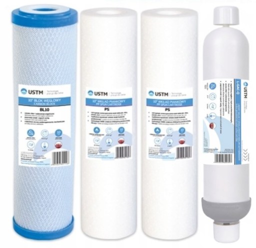Zestaw 4 szt wkładów firmy USTM do serwisu odwróconej osmozy RO5.