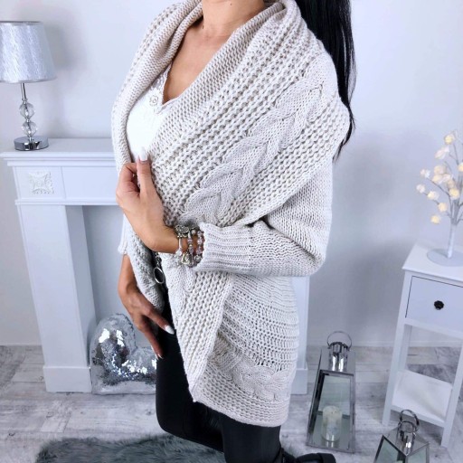 Świetnie wygląda w zestawieniu z jeansami lub legginsami, może zastąpić marynarkę.