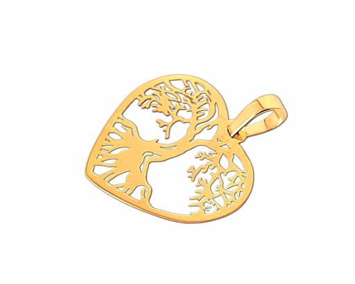 Złoty wisiorek - ażurowe Serce z Drzewem Życia - próba 585
