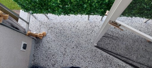 - Następnie na wyschniętą posadzkę nałożyć żywicę poliuretanową bezbarwną w celu zamknięcia płatków wewnątrz
