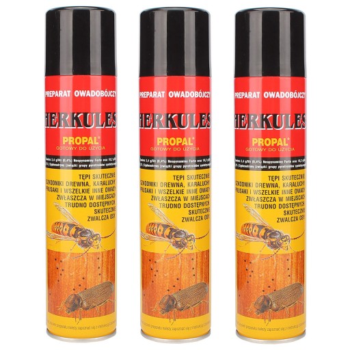 Gotowy do użycia środek Propal HERKULES S to aerozolowany preparat owadobójczy o niezwykłej skuteczności przeznaczony do zwalczania w pomieszczeniach wszelkich owadów biegających, jak np. karaluchy, prusaki, pchły, pluskwy, mrówki faraona, rybiki cukrowe itp. Zwalcza skutecznie także owady latające (muchy, komary i inne).