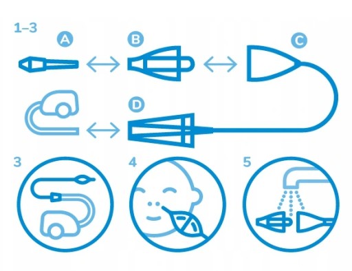 Gdy nie masz możliwości użycia odkurzacza, możesz w prosty sposób zmienić końcówkę i wykorzystać siłę swoich płuc, by pozbyć się nieprzyjemnej wydzieliny z noska malucha. Katar zbiera się w pojemniczku w komorze aspiratora, którą bez problemu rozkręcisz, by wyczyścić urządzenie.