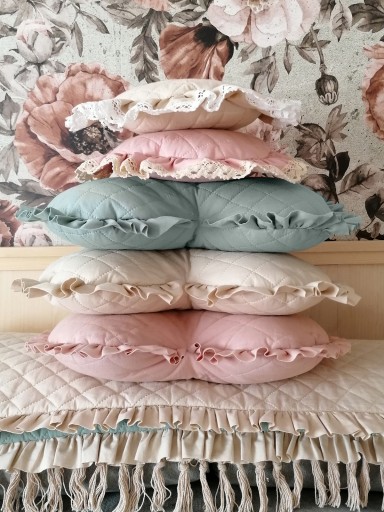 - Poduszka SERCE- bez zdejmowanej poszewki jest wypełniona atestowaną włókniną. Jest mięciutka i bardzo starannie wykończona. Wymiar z falbanką ok 45x45cm