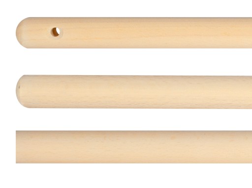 Drążki wykonane są z wysokiej jakości drewna bukowego. Polerowane, gładkie, nie malowane w jasnym kolorze.
