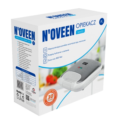 Opiekacz do kanapek SM453 Ceramic Inox to urządzenie o dużej mocy 800 W. Model ten wyposażony został w nieprzywierającą powłokę ceramiczną typu marmurek, która znacznie ułatwia czyszczenie. W zestawie znajdują się przepisy kulinarne na smaczne kanapki!
