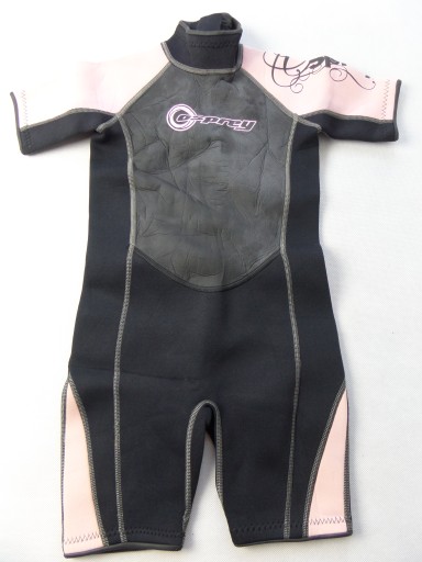 Neoprenowa pianka kombinezon, zapinany na zamek i rzep, gr pianki około- 2 mm- używana stan dobry- puszczone z tyłu oczka na pupie, WYMIARY dł- 63 cm, dł nogawki od kroku- 14 cm, dł od ramienia do kroku- 47 cm, szer pod pachami- 60 cm, pas- 58 cm, biodra- 64 cm.