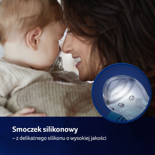 Profilowany kształt umożliwia dziecku swobodne oddychanie przez nos. Bezpieczny surowiec, z którego jest wykonana, nie zawiera bisfenolu A.