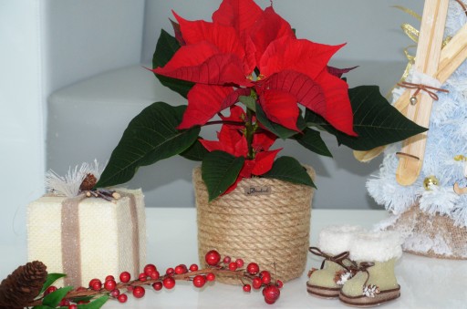 Doskonała dekoracja do sadzenia świątecznego kwiatu Poinsecji, zwanej popularnie Gwiazdą Betlejemską oraz tworzenia świątecznych stroików.