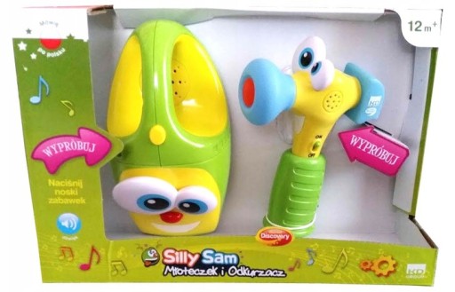 Znany i lubiany młotek Silly Sam występuje teraz w towarzystwie wesołego odkurzacza. Razem zachęcą niejednego maluszka do wspaniałej zabawy. Wypowiadają wesołe wyrażenia oraz wydając zabawne dźwięki nie pozwolą nawet na krótką chwilę nudy oraz zaangażują Twoje dziecko do wykonywania zadań domowych. Zabawa narzędziami, przypominającymi te z życia codziennego, pozwala dzieciom poznawać zasady panujące w domu, a także wspiera rozwój koordynacji ruchowej.