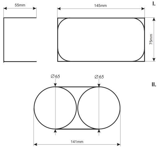 - Wymiary zewn. (razem z puszką podtynkową) - 145x75x49 mm