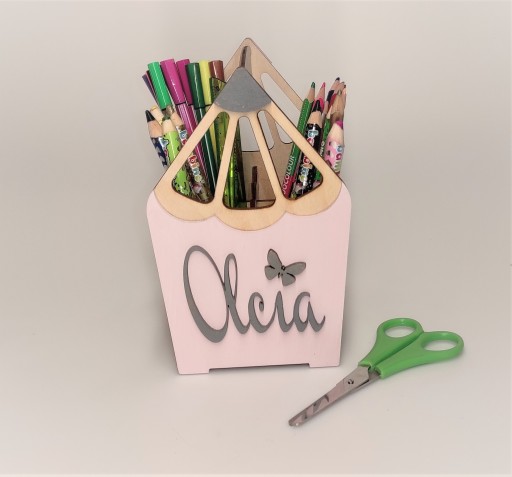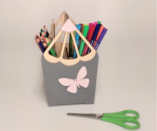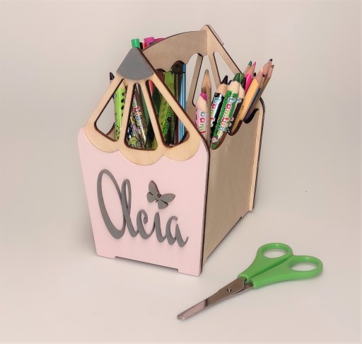 Organizer wykonano ze sklejki brzozowej 3mm z malowanymi ozdobnymi elementami.
