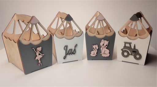 Istnieje możliwość wykonania dowolnego imienia oraz wyboru koloru(grafit-róż, biały-grafit, róż-biały). Dostępne ozdoby: motylki, kotki, serduszka, baletnice, samochodzik, traktor.