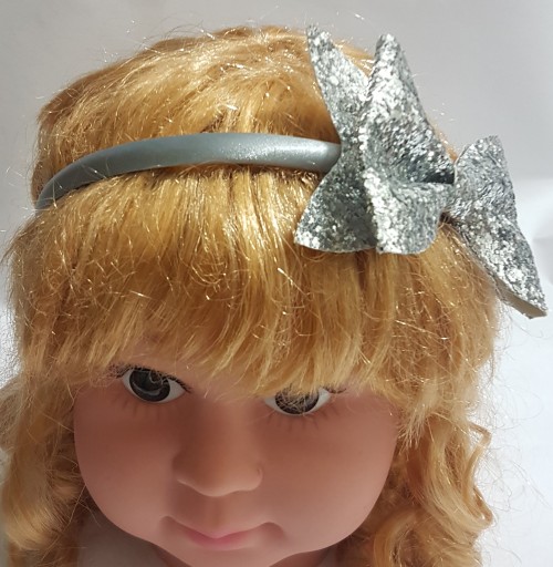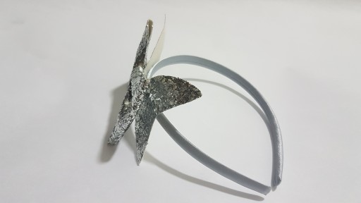 Pałąk pokryty atłasową tkaniną popielato-srebrną,/wewnątrz plastikowy/